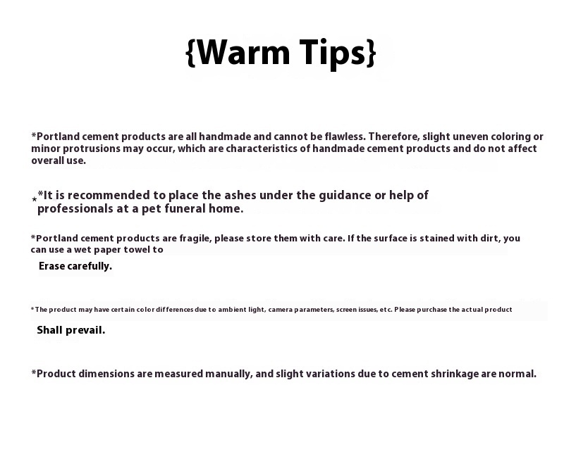 Product information: Type: cinerary casket Material: Cement Craft: Handmade Packing list: Ash urn x1 Product Image: